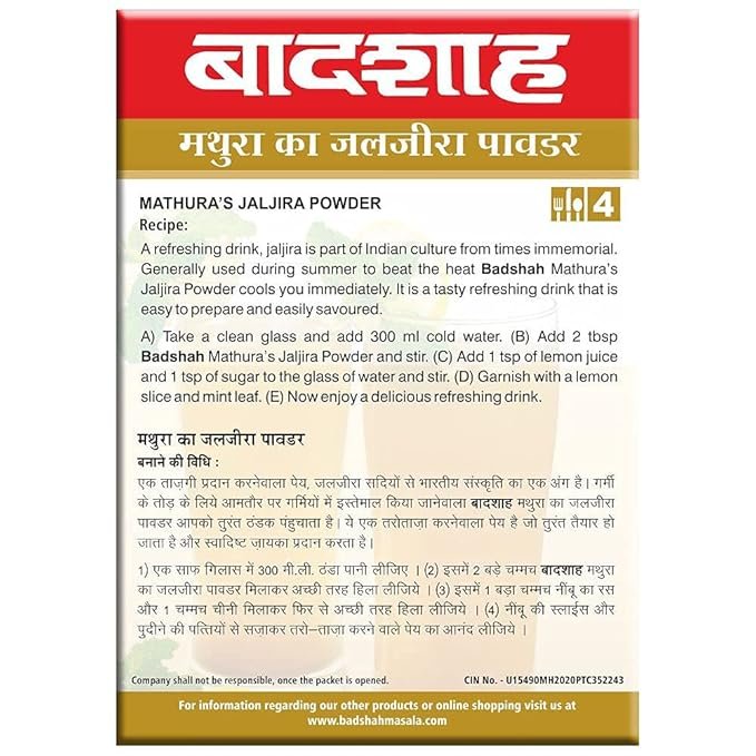 - Instant Welcome Drink: For large weddings or corporate events, making fresh Jaljira from scratch (grinding mint, roasting cumin) is time-consuming. Badshah provides a standardized, high-quality powder that dissolves instantly in cold water. Just add Boondi and Mint leaves for a premium presentation.