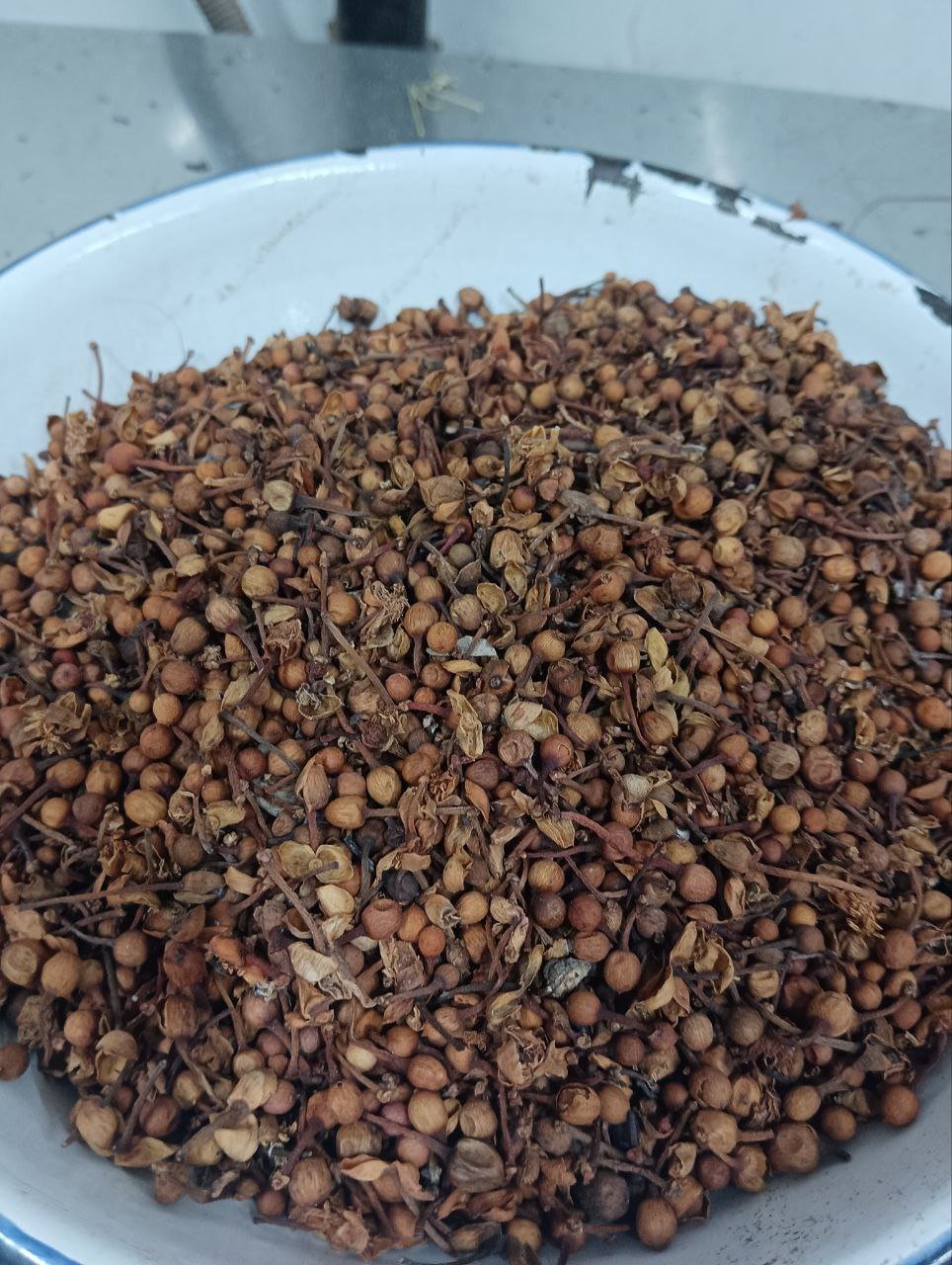 - Appearance: It resembles small, hard, clove-like buds or peppercorns, but with a rust-brown or dark red color.